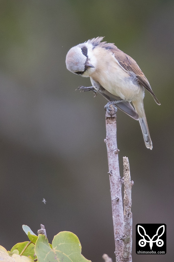 囀りと体型はセアカモズそのもの。しかし、尾羽の白斑の入り方はセアカモズらしくない形だけど、モズの仲間で尾羽に白斑が入るのはセアカモズだけ。シマアカモズとの交雑なのだろうか?