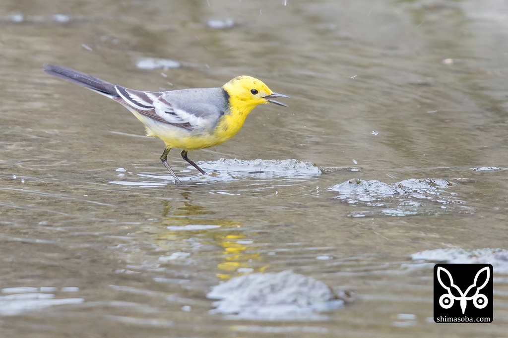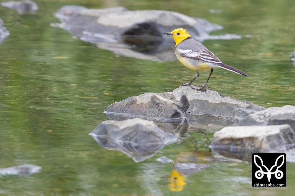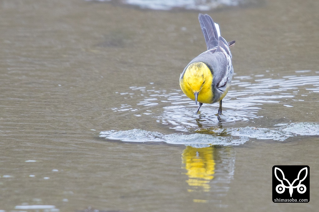 水路にいるとのことだったので、橋の上から双眼鏡で覗くもキガシラセキレイは見当たらず。反対側の池を探すといました。キガシラセキレイは、思っていた以上に黄色かった。^^