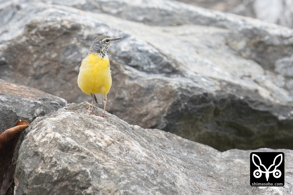 正面から見ると頭のてっぺんから腹まで黄色なキガシラセキレイ。