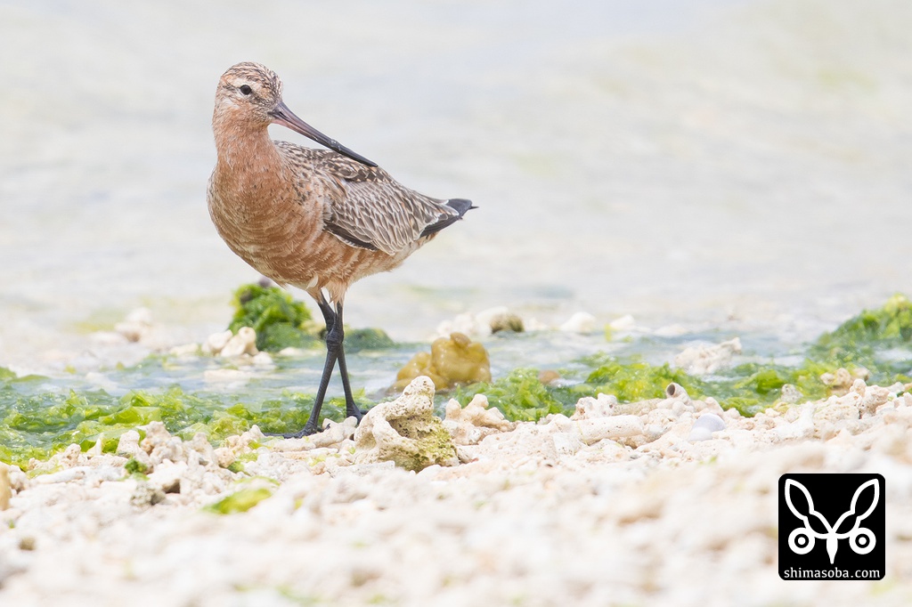 数日前から、オオソリハシシギを海岸で見るようになりました。今日は、糸満市の海岸にオオソリハシシギ(オス2羽、メス2羽)が飛来していた。