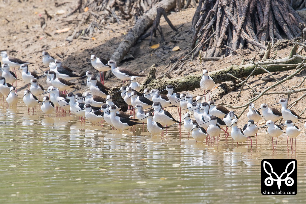 億首川には、たくさんのセイタカシギが休んでいた。北上組だと思われる。