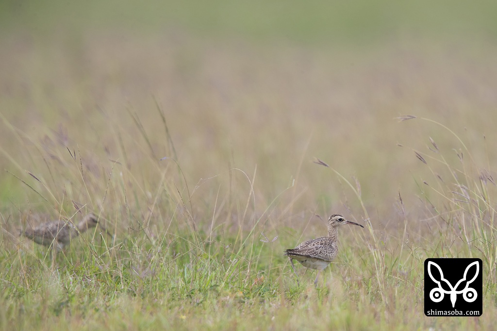 向こうからこちらへどんどん近づいて来たりと愛想の良いコシャクシギたちでした。昨年もここの環境なら必ずコシャクシギが入ると睨んでいた場所なので4羽のコシャクシギを双眼鏡で見たときはかなり興奮しました…。^^; 島の南側で海に面した牧草地や草地にはコシャクシギ以外にもいろいろな渡り鳥が休憩してそうです。