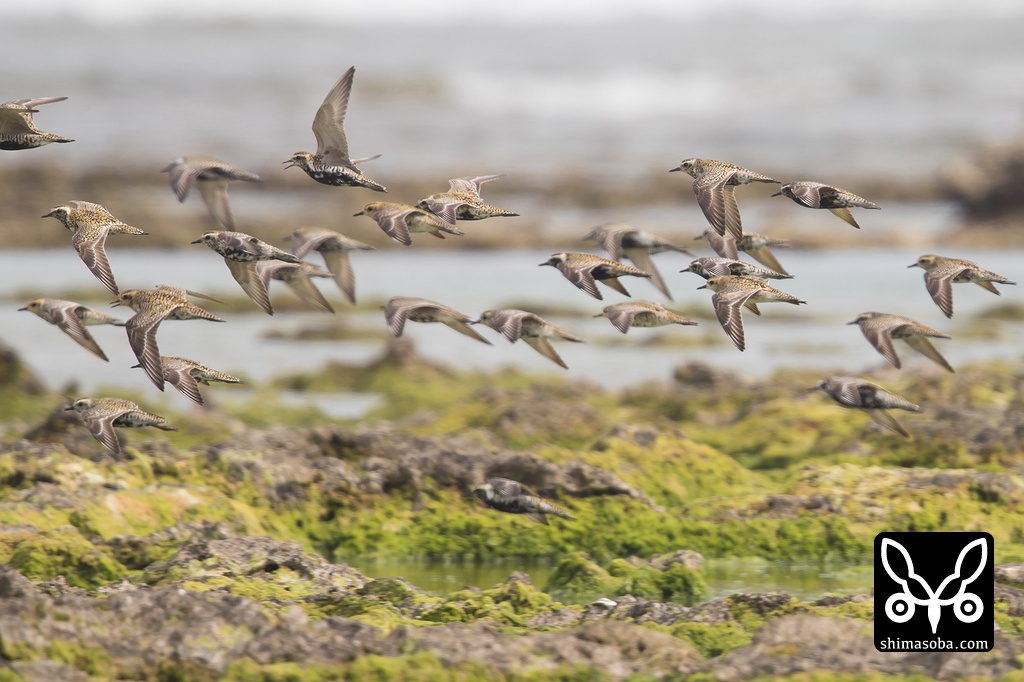 ハヤブサがやってくると十数羽のチュウシャクシギや100羽以上のムナグロなどが一斉に飛び立ち海岸は一時騒然となりました。