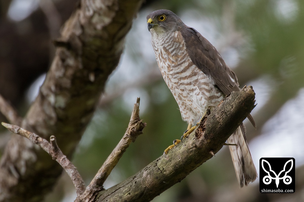 巣材を運んで来たオス。八重山のリュウキュウツミは、広葉樹で営巣しますが、ツミは、リュウキュウマツやモクマオウで営巣します。