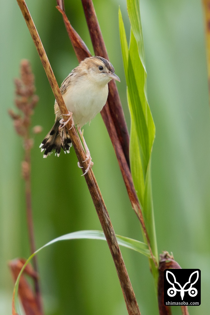 セッカの巣立ちしたヒナたちは、通常、草むらの中に紛れて観察、撮影ともに難しいのですが、この牧草地は、巣立ち直後ぐらいに草が刈られたようで比較的見やすかった。草刈りが数日早かったら巣立ちもできなかった可能性があります。巣立ち、発見ともに絶妙のタイミングでした。^^