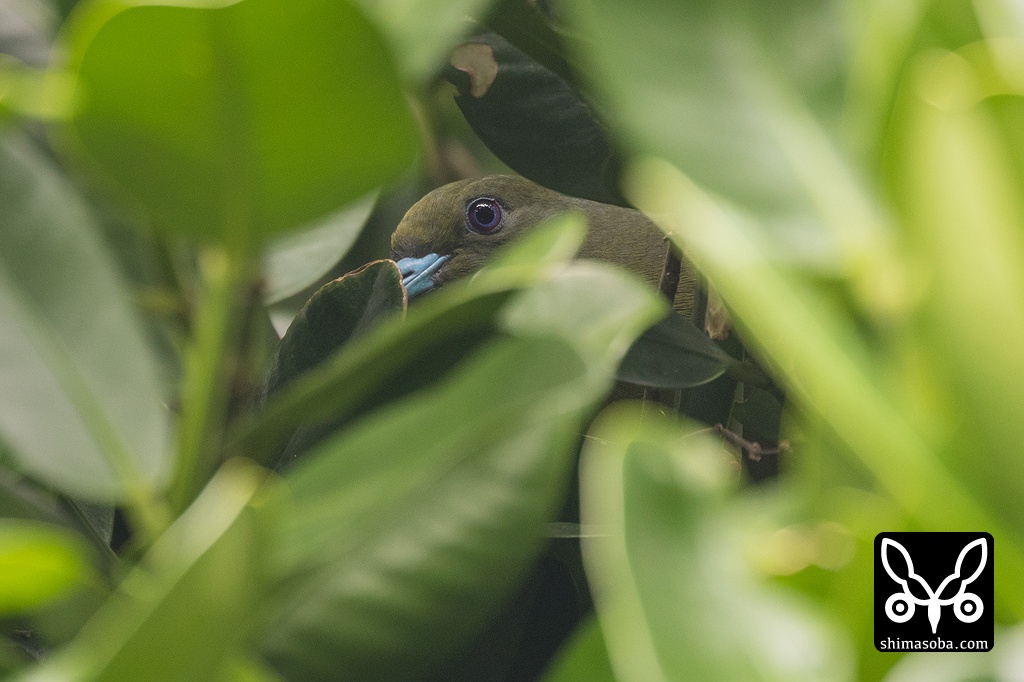 昨年、ズアカアオバトが営巣していたポイントで、ことしも営巣が確認できました。昨年は、2ペアともモクマオウの高い所への巣がけだったので、ヒナの姿など確認することはできなかった。