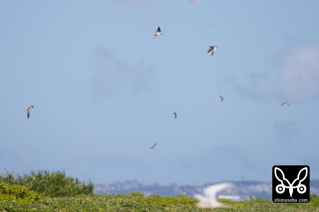遠くには、マミジロアジサシが群れで舞っていた。