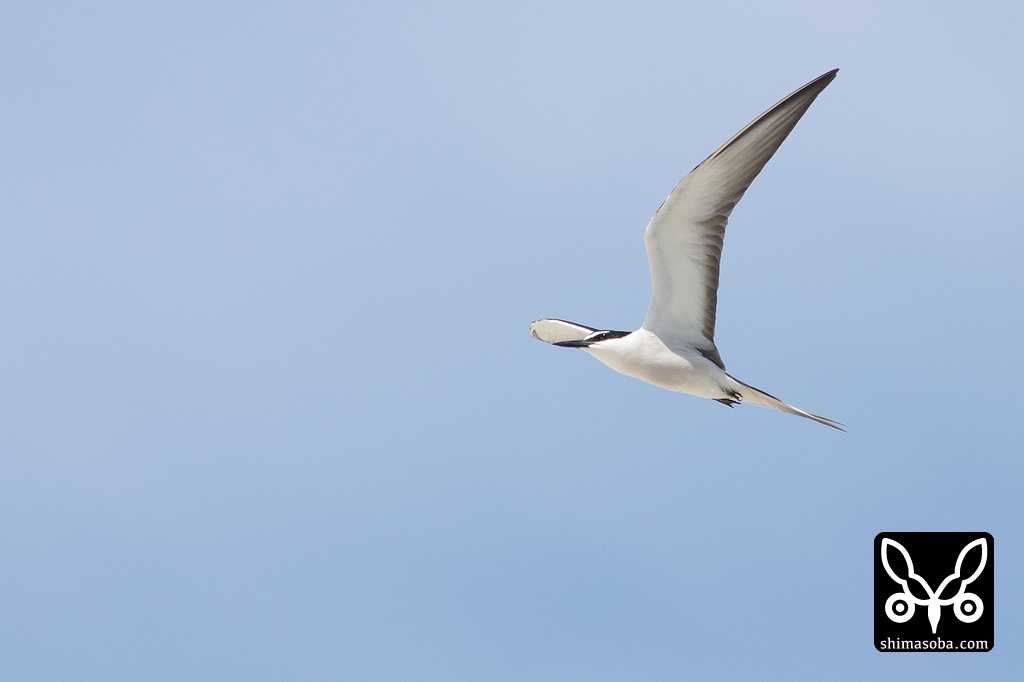 ナガンヌ島などで営巣もしているようで二十数羽の群れの飛翔も見ることができました。想像していたよりかなり大きくオオアジサシほどありました。また、頭から背中にかけての黒とそれ以外の白の部分が美しいコントラストで大変迫力のあるアジサシでした。