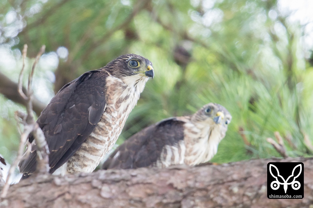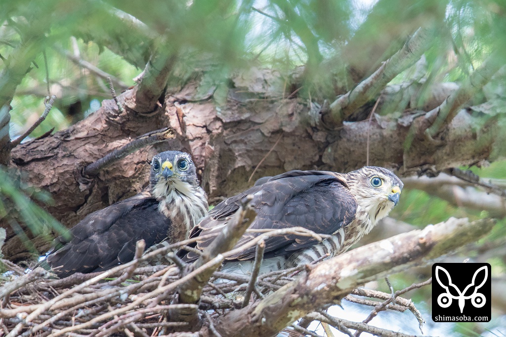 ツミの兄弟。もうしばらくすると営巣木にも戻らなくなり独り立ちすると思います。