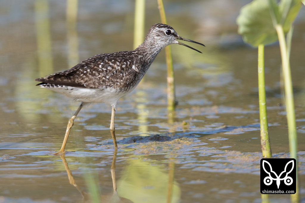 暑そうに口を開けるタカブシギ。