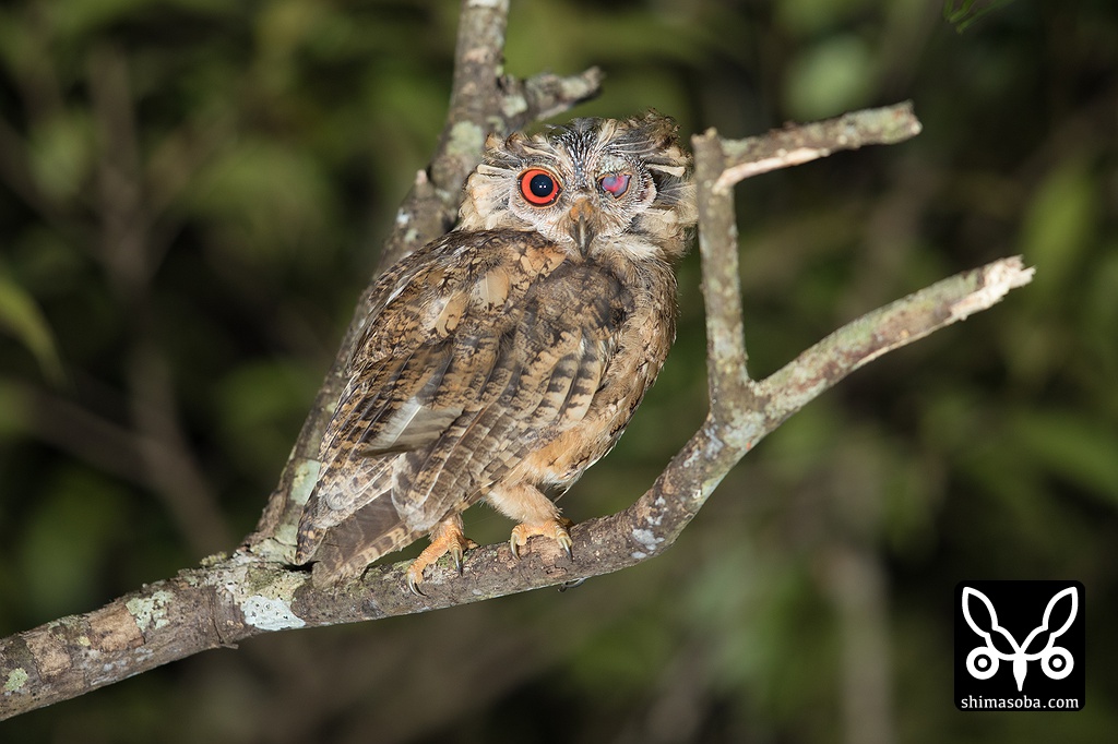 この痛々しいオオコノハズクの撮影で今夜は終わりにし、機材を片付けた後、周りを少し探索すると20メートルぐらい離れた場所にもう1羽、オオコノハズクがいました。ペアかもしれません。