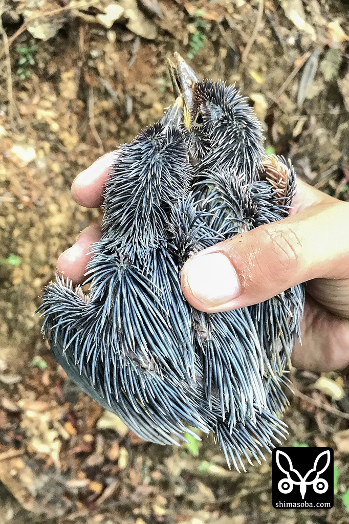 この巣には4羽いたのですがもう1羽はどうしても見つからず。あまり長時間巣の周りに滞在して営巣放棄したら元も子もないので、その1羽は諦めました。