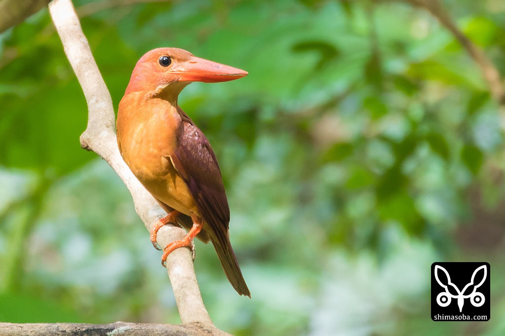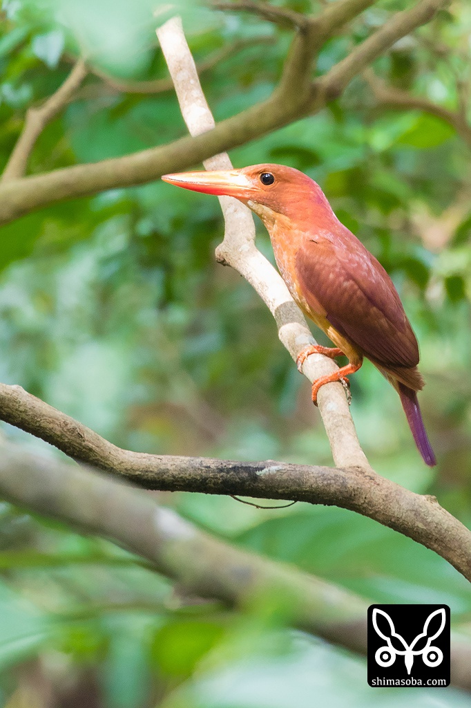 遠くから見ていると親鳥が目の前の木に止まった。警戒心の強いアカショウビンなので一瞬の出来事でした。