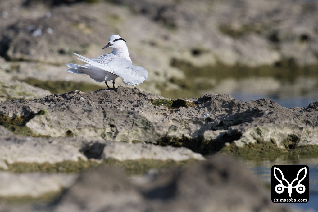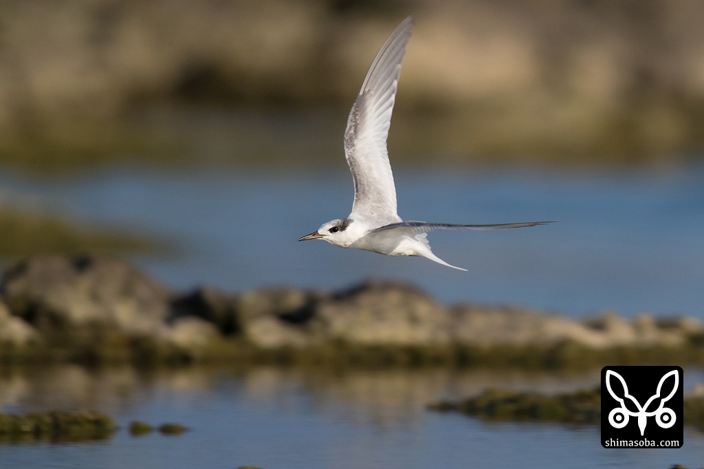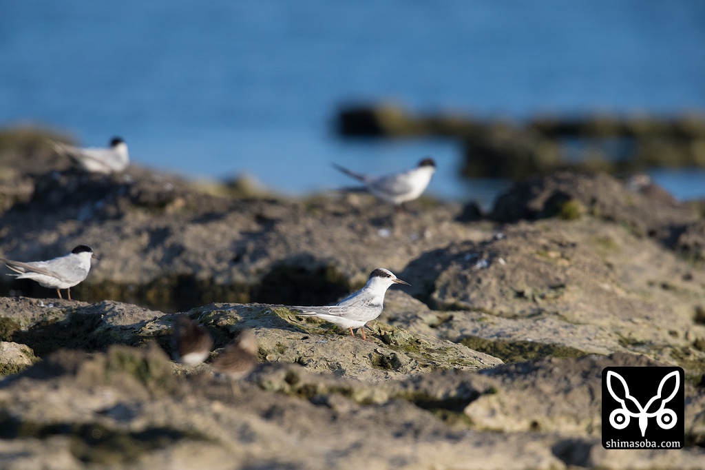沖合ではエリグロアジサシの親子が飛んでいた。