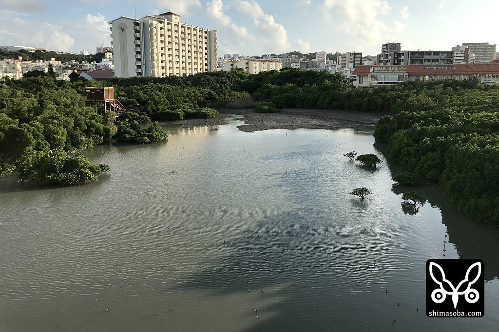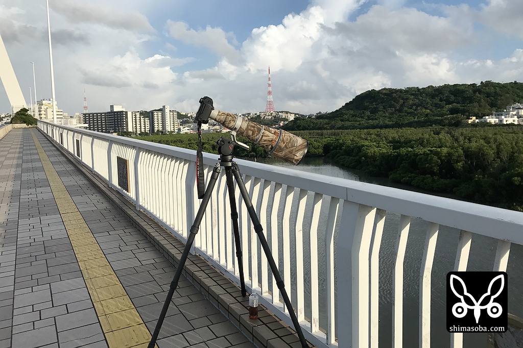 漫湖干潟を見渡せるとよみ大橋に到着し、しばらく双眼鏡で探しているとナンヨウショウビンが視界に現れました。お気に入りの枝に止まってカニを捕まえていました。30分もすると干潟は見えなくなり、ナンヨウショウビンもマングローブの中へ消えていきました。8月10日に発見されて以来、もうすぐで滞在1カ月となります。この調子だと、このまま越冬しそうですね。^^;