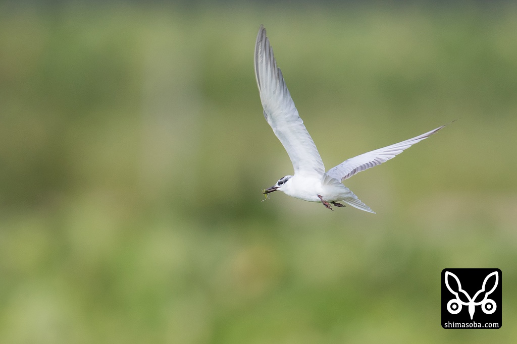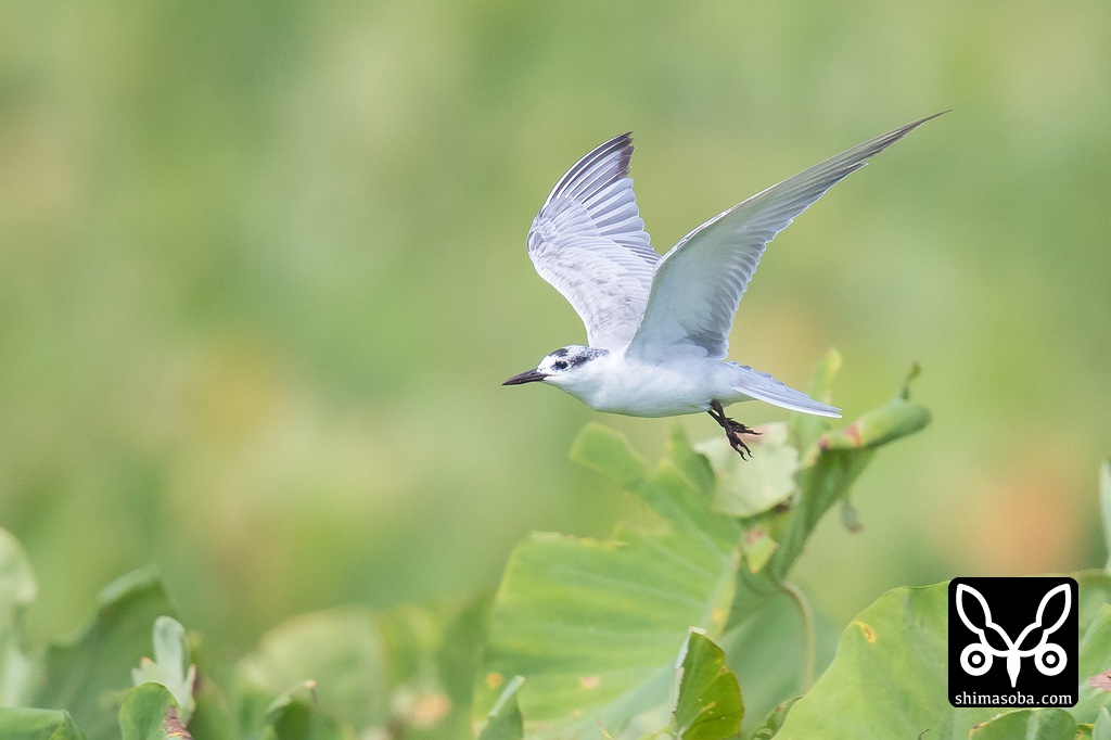 餌を探しながら芋畑の上を飛び回るクロハラアジサシ。