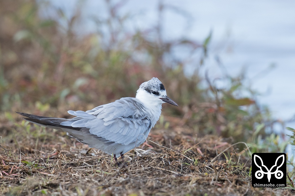 クロハラアジサシ幼鳥。第1回冬羽へ移行中。