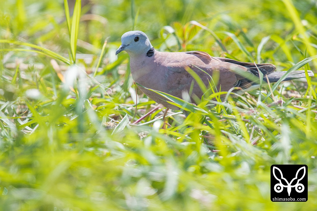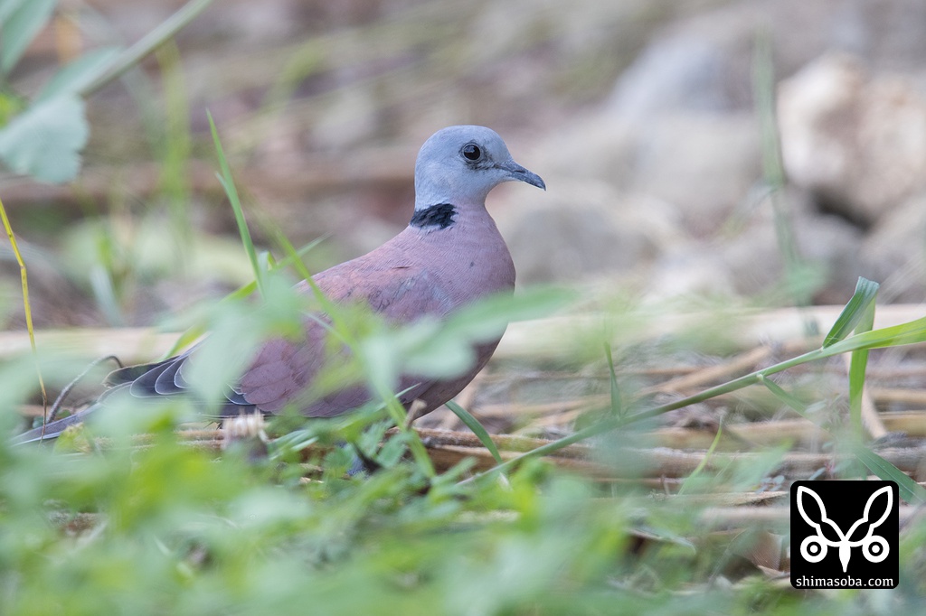 畑にキジバトが十数羽群れで餌を拾っていたので、双眼鏡でのぞいてみると小さな赤いハトが目に飛び込んできました。約1年ぶりのベニバトです。