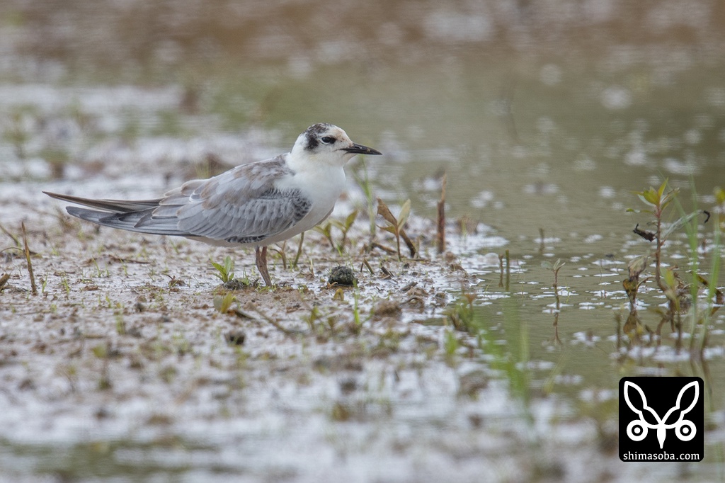クロハラアジサシの群れが三つほど入って合わせて30羽ほどが田んぼにいました。その中に1羽だけハジロクロハラアジサシの幼鳥を見つけた。