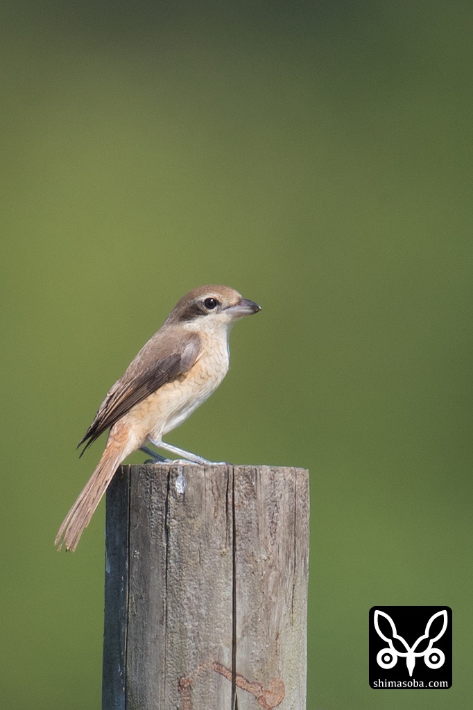 上のシマアカモズと同じ畑にいたシマアカモズ。こちらも幼鳥。