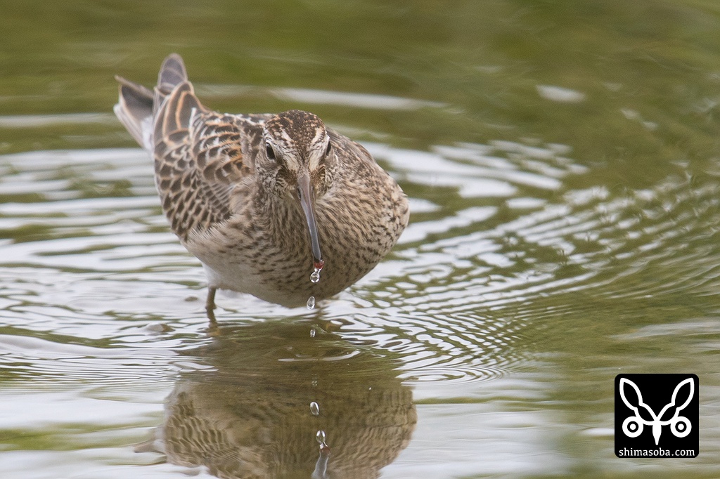 くちばしの先に獲物を挟んでいます。水底のどろにくちばしを突っ込んでは、小さなイトミミズかアカムシのようなものを食っていました。