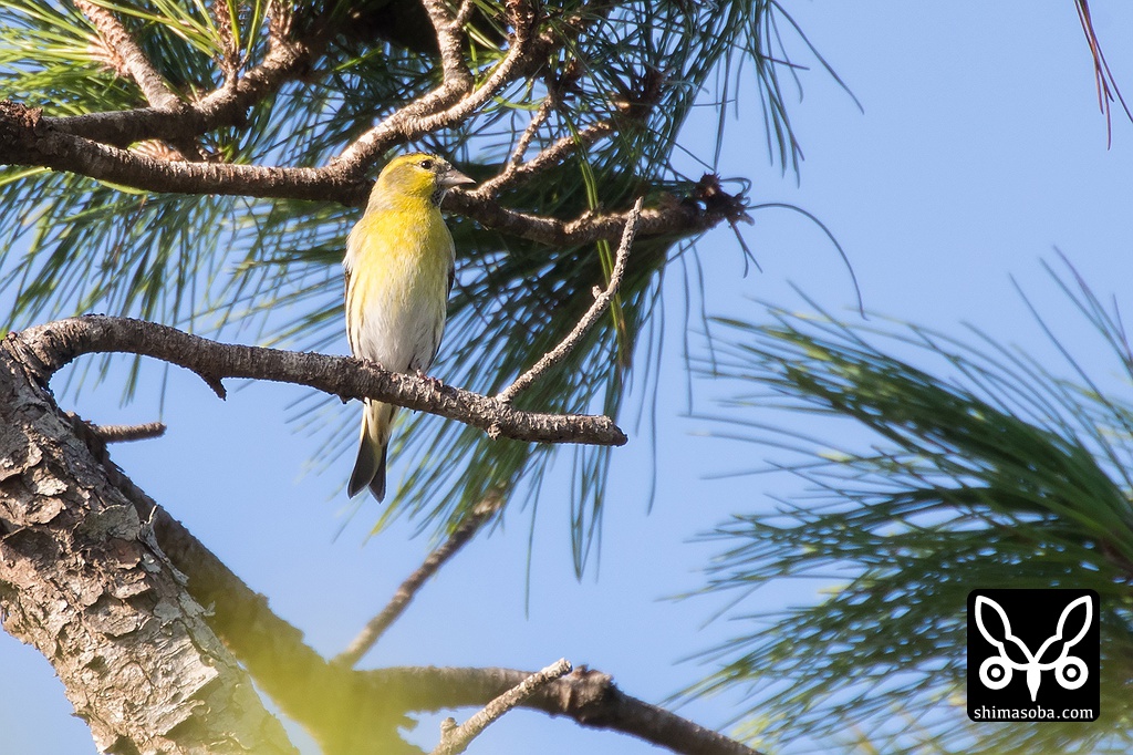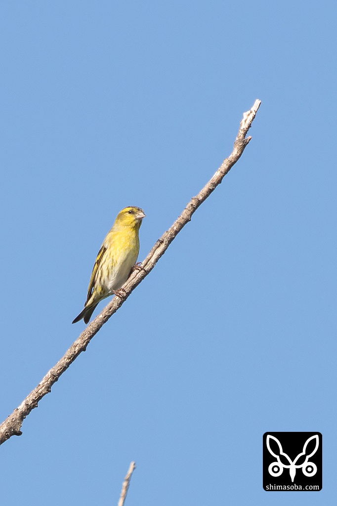 マヒワは、群れでやってくると木の高いところであたりを見回していました。