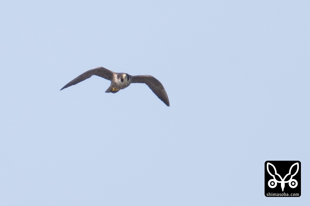 干潟上空に現れたサシバの幼鳥。
