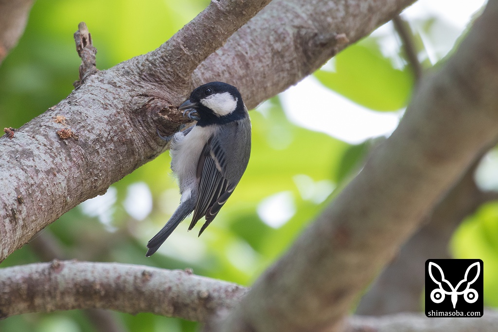 シジュウカラは枯れ枝に隠れる虫を探し出しているようでした。。