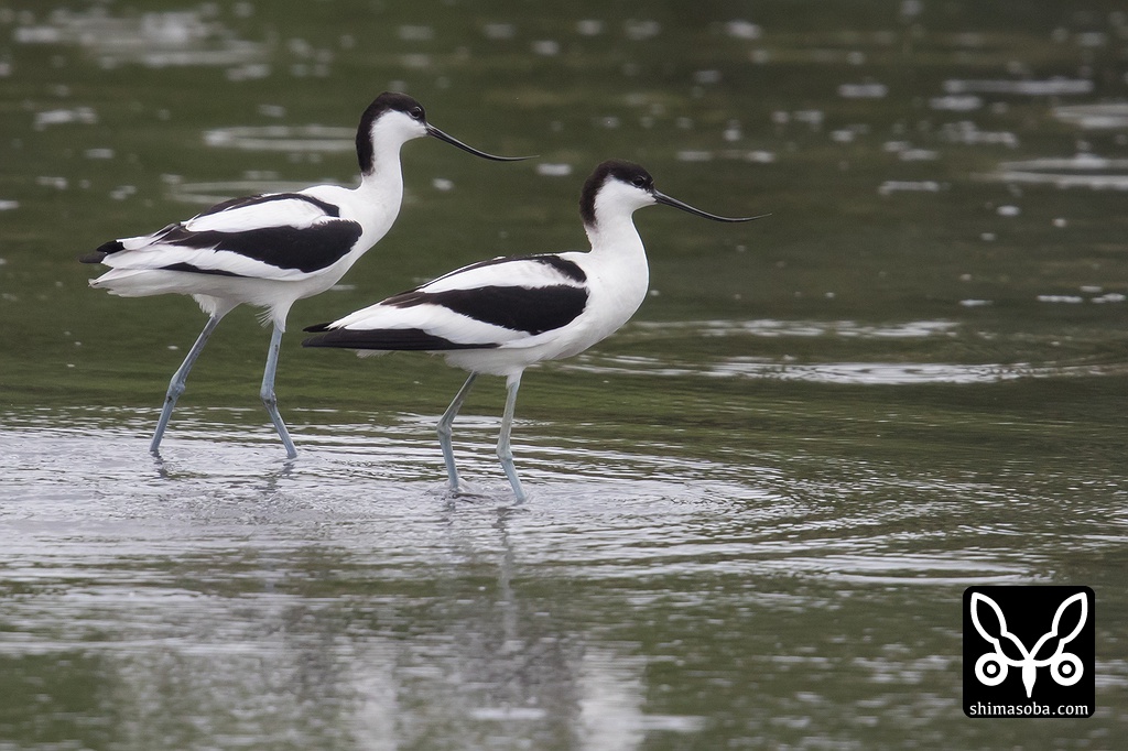 美しいソリハシセイタカシギ成鳥のシンクロ。