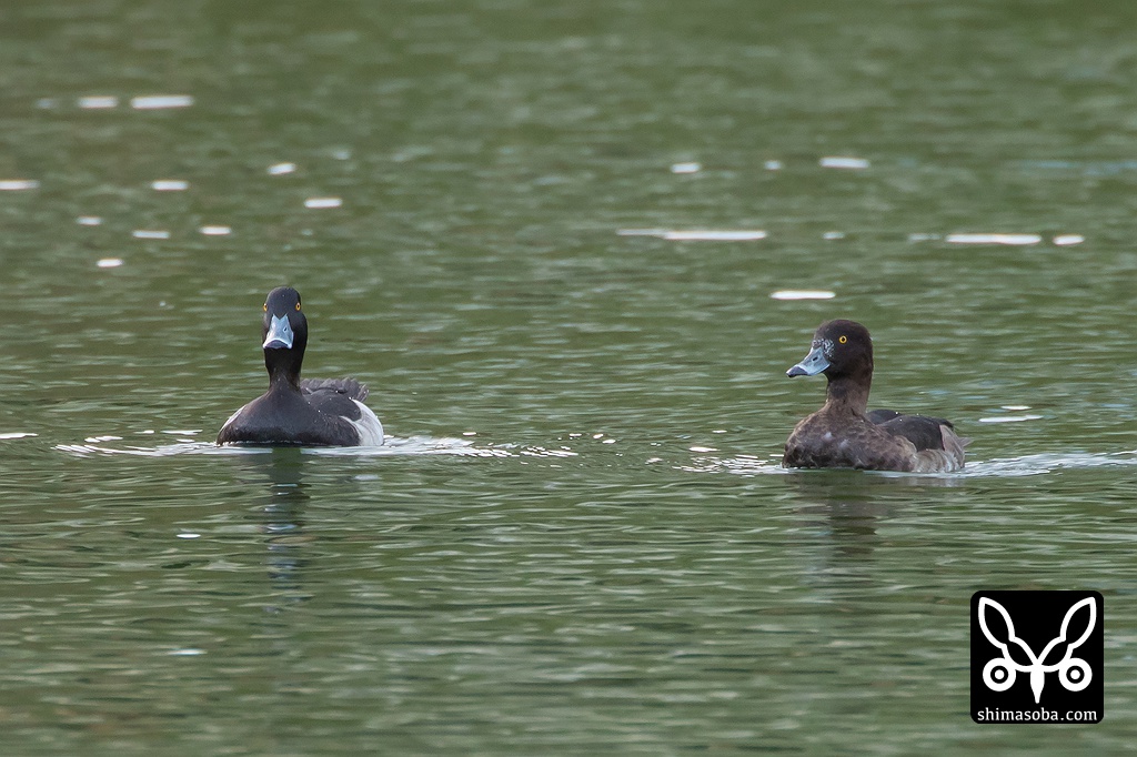 キンクロハジロのオス(左)とキンクロハジロのメス。