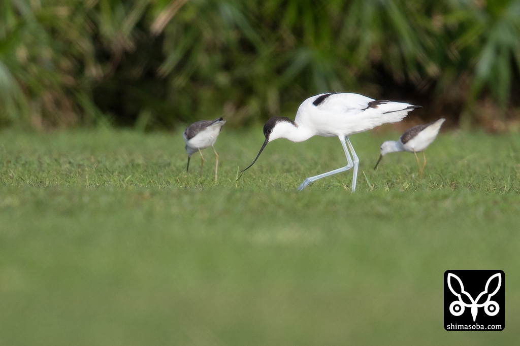 芝生の上のソリハシセイタカシギなんて繁殖地でもない限りなかなか見られないので親の仇のようにシャッターを押してしまった…。^^;