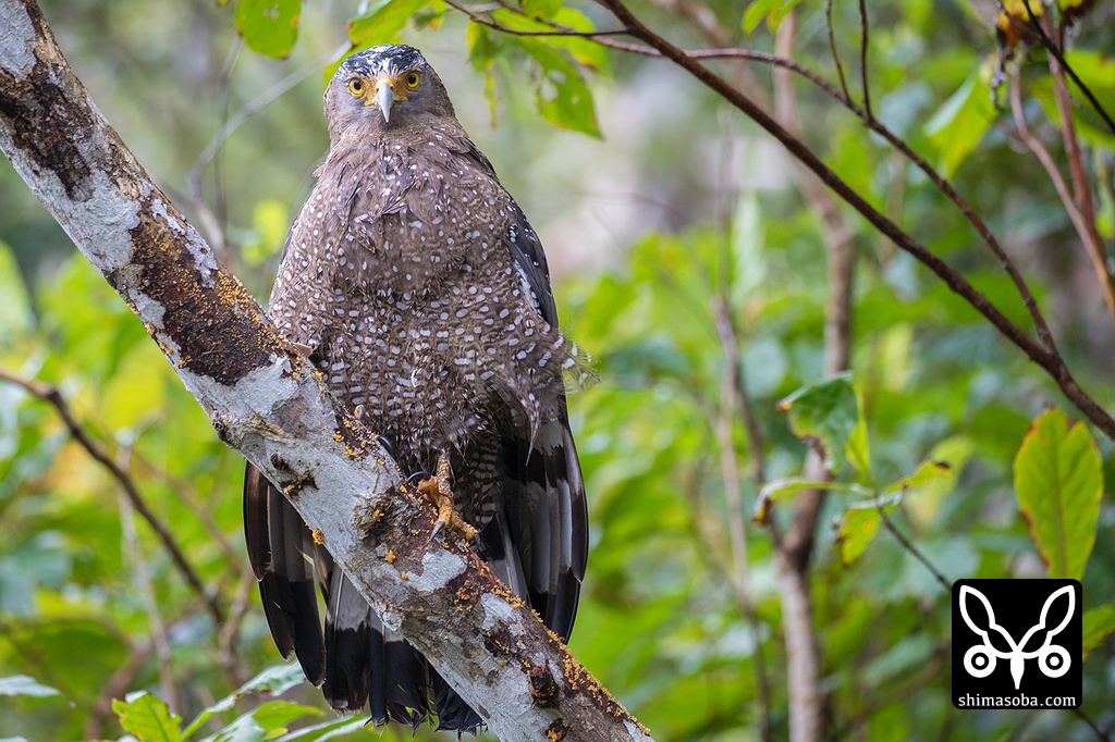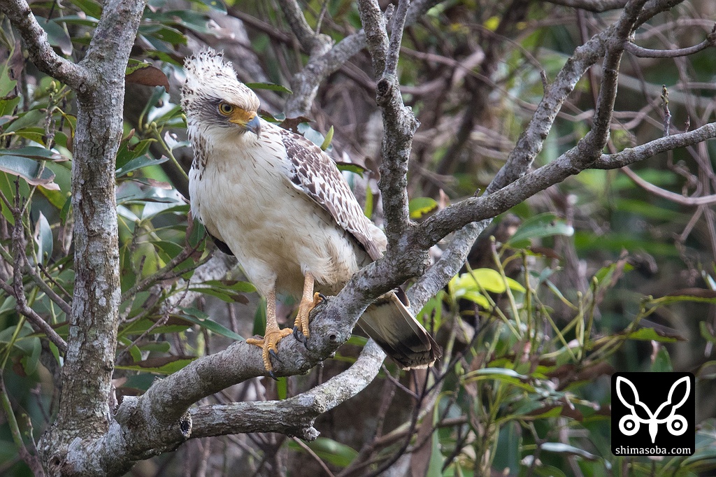 雨が上がった隙に羽を乾かしに来たカンムリワシ成鳥メス。