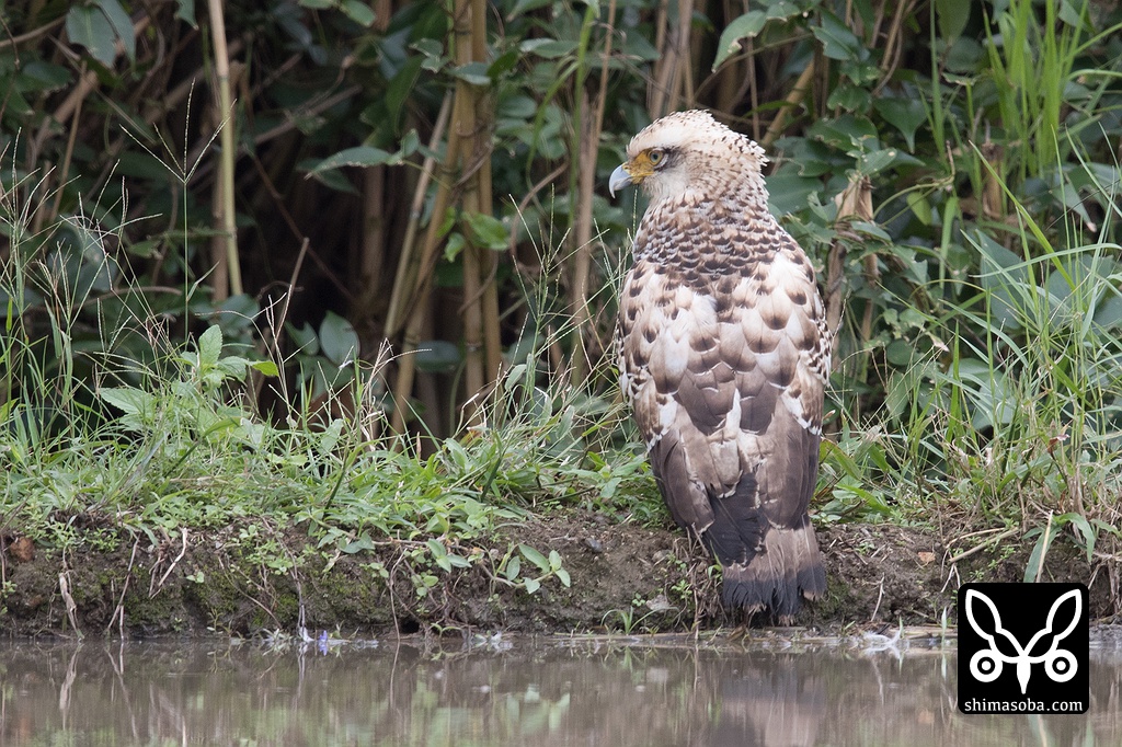 畔を歩くカンムリワシ。