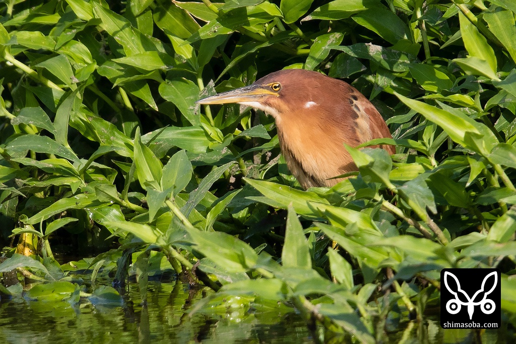 リュウキュウヨシゴイのメス。このメスは、くちばしの先が欠けているので個体識別できます。