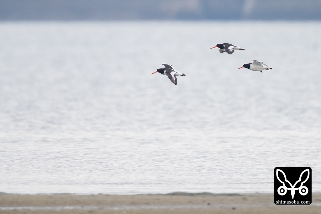 ミヤコドリ飛翔。晴れてたらなー。