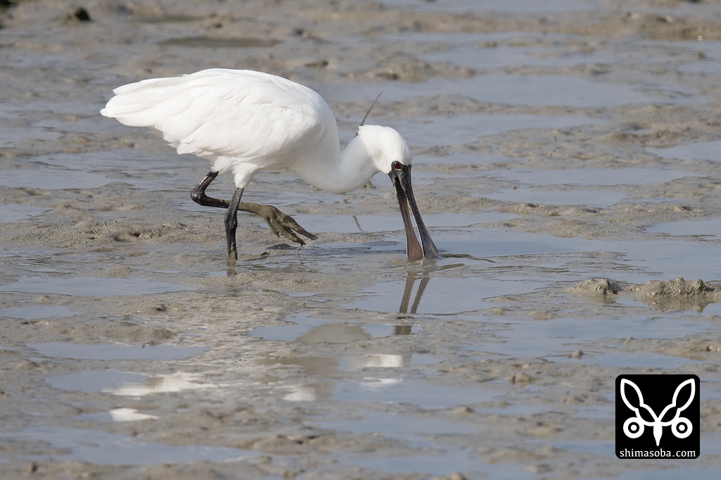 豊崎の干潟には、「J15」を含めクロツラヘラサギが6羽。冠羽が目立ちだし、目の周りも黄色に色づいてきた。繁殖行動のような動きも見られました。