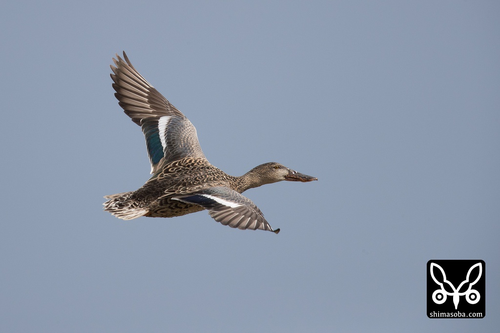 サーファーに驚いて飛び立ったハシビロガモ。