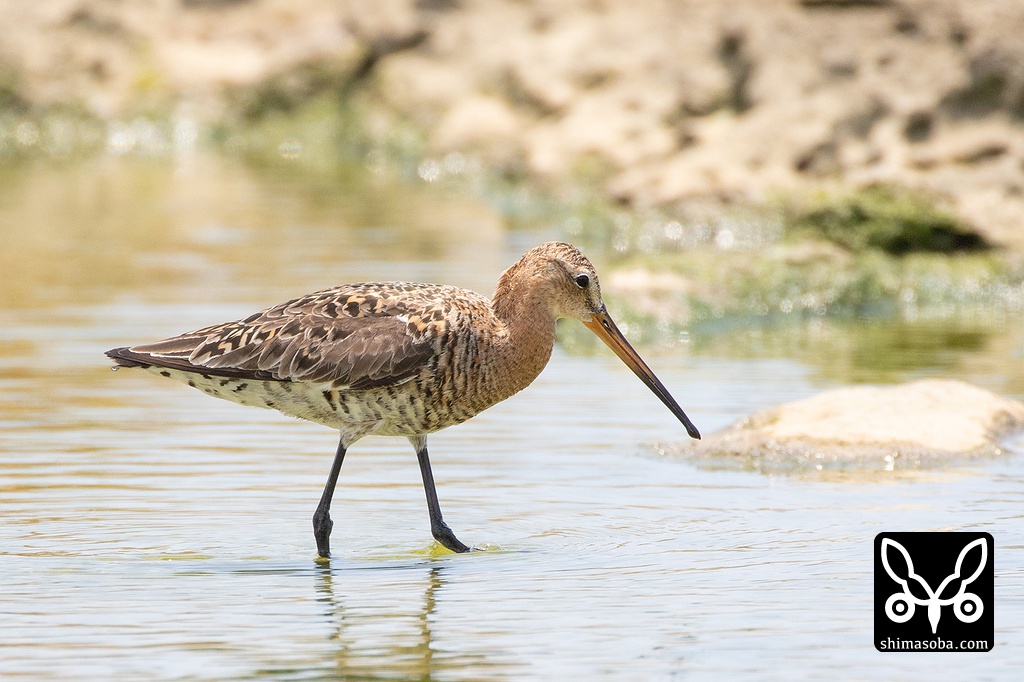 胸のボーダーが夏らしくておしゃれなオグロシギ。