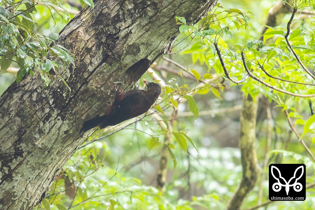 ノグチゲラの子育てが始まっています。 昨年と同じペア と思われる2羽が、雨の中、巣の中のヒナたちに餌を運んでいました。餌のサイズから見て巣立ちは今月中と思われます。