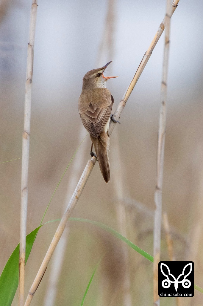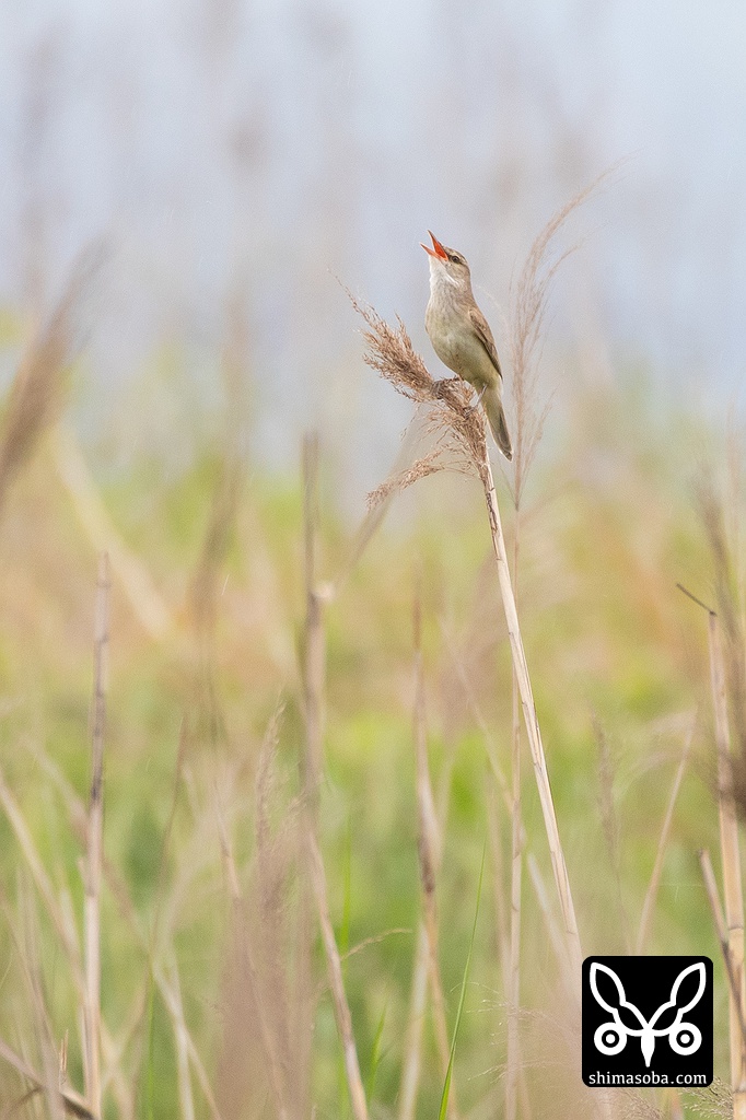 オオヨシキリは、近づくと葦の中に隠れてしまいますが、しばらく待っていると出て来て大きな声でさえずっていた。