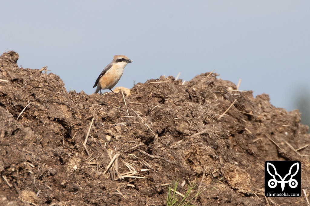 堆肥が積んであったので何かいるだろうと思ったら、モズのオスがいた。