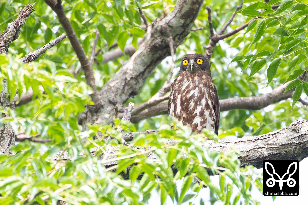 こちらは別のアオバズク。ここもオオコノハズクと営巣場所がかぶっている。最初の2016年に使っていた樹洞は、 ことしはオオコノハズク取られた 。^^;