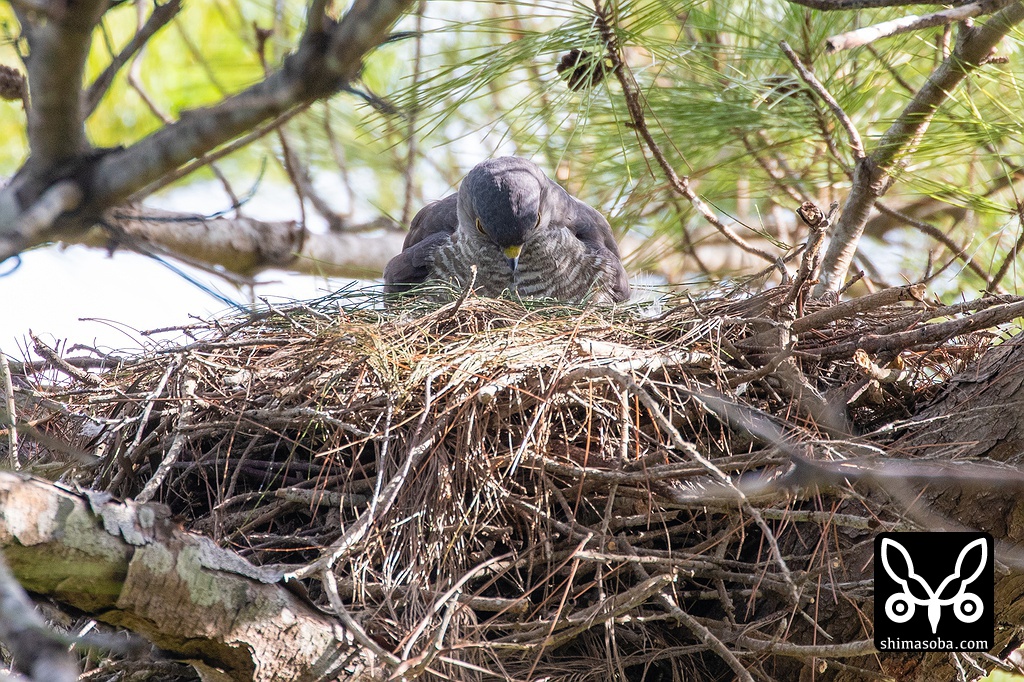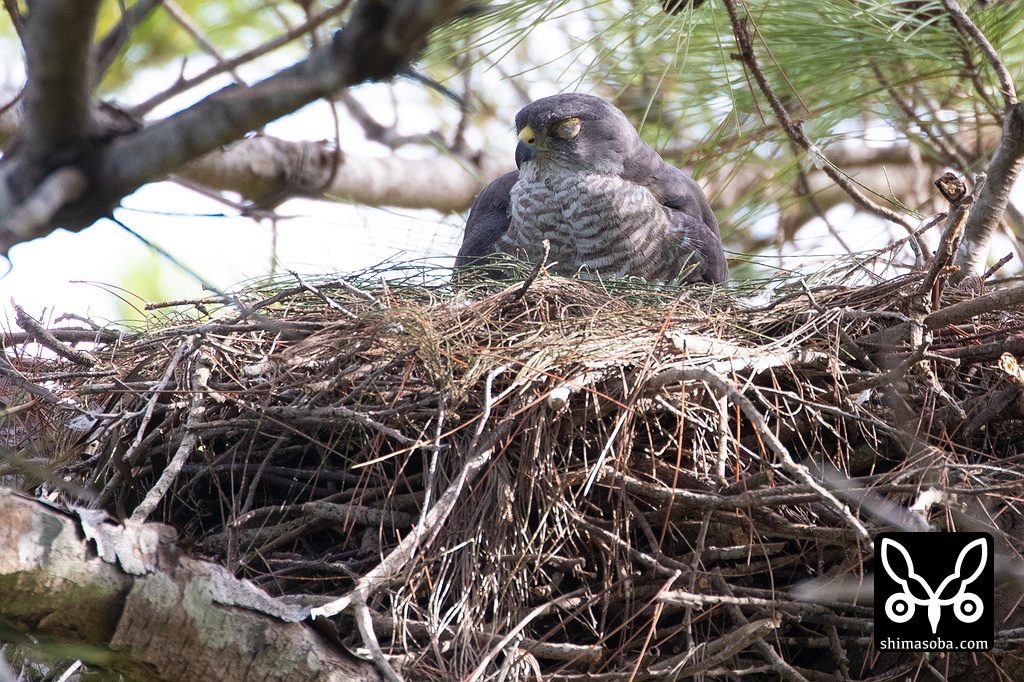 ツミの営巣、6巣のうち2巣でヒナが孵っていました。もう一つも孵っていると思うのですが、メス親の襲撃が激しくてまともに観察できませんでしたが、毎年、ヒナが誕生すると鳥が変わったように攻撃するツミなので多分、孵化しているのでしょう。