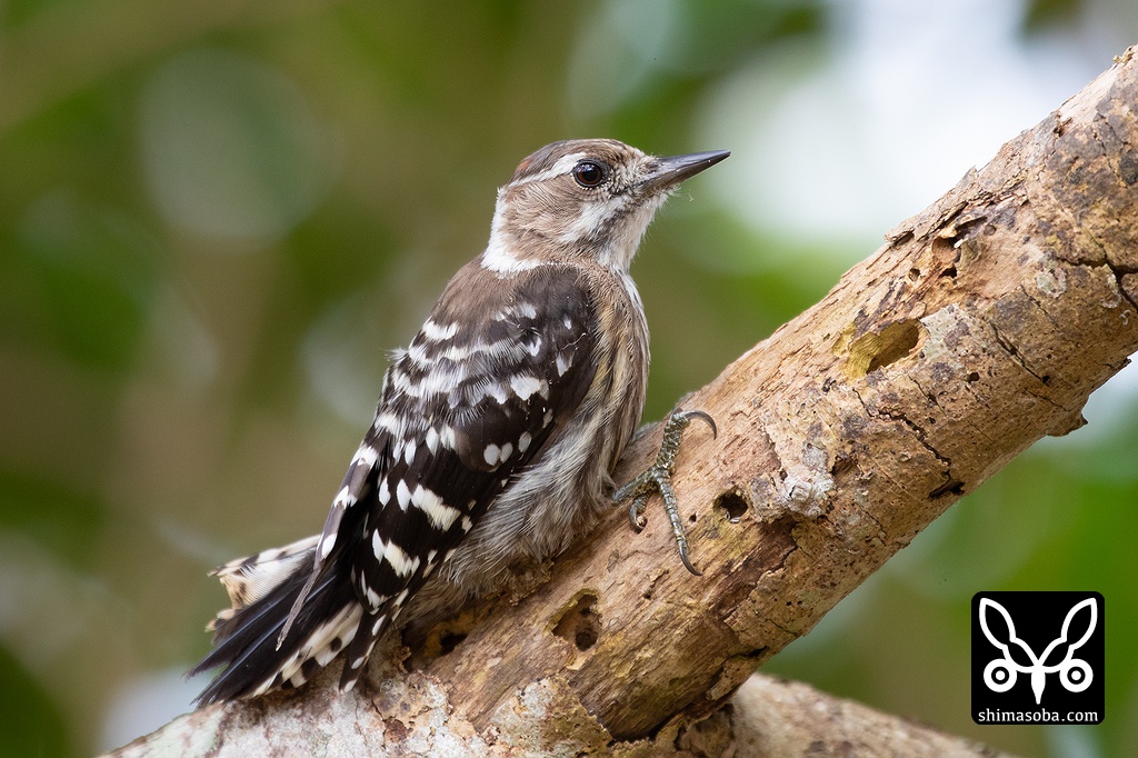 リュウキュウコゲラのオス。目の前まで来て枝をコンコンと叩いていた。