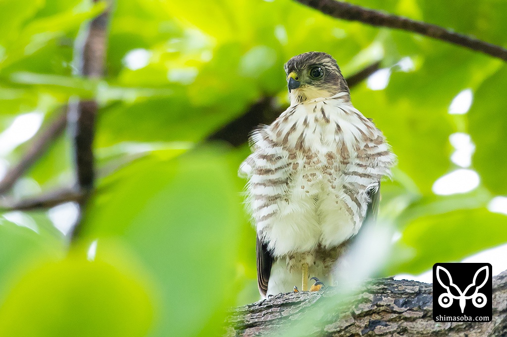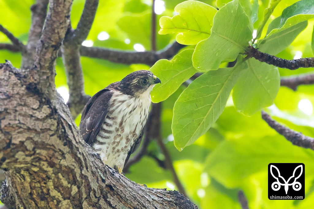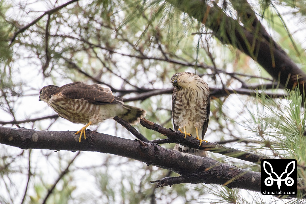 ツミのヒナ2番子。営巣木のコバテイシと近くのリュウキュウマツを行ったり来たりしていました。