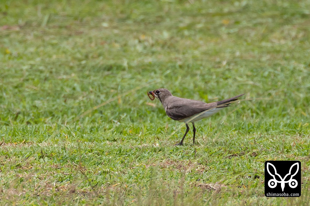 クマゼミをつかまえたツバメチドリ。100メートルほど離れた飛んでいるクマゼミを捕まえてきた。