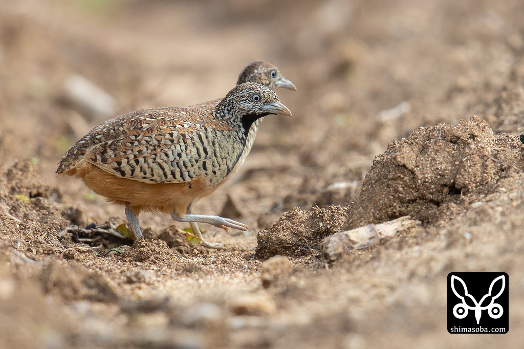 ミフウズラのペア。手前の喉元が黒いのがメスで奥がオス。