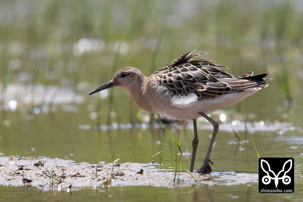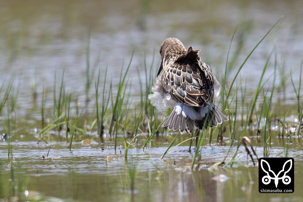 ウズラシギとエリマキシギは行動を共にしており、まるで大きなエリマキシギに憧れるウズラシギが羽を立てて真似をしているようでした。^^