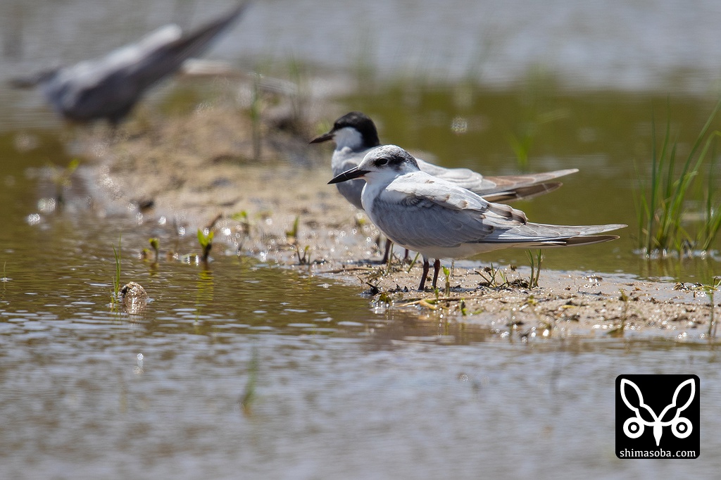 クロハラアジサシは成鳥2羽と幼鳥1羽。