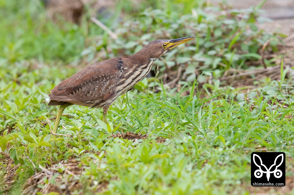 田んぼの畔にリュウキュウヨシゴイのメス。